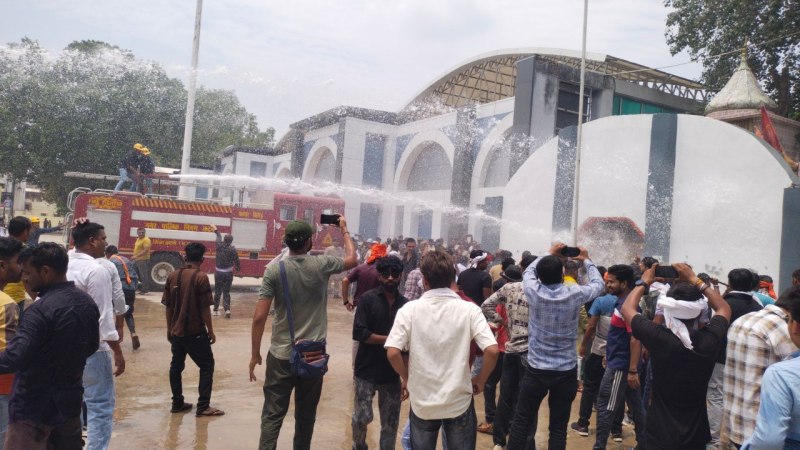 मंदिर के सामने कलंग रूपी दीवार को हटाने को लेकर कार्यकर्ता बड़े ही उत्साह के साथ पहुंचे थे। हाथों में हथौड़ा, सब्बल, रॉड आदि लेकर पहुंचे और दनादर दीवार में वार किए, ताकि वह ढह जाए। उनका कहना था कि जबतक हमारी आस्था के केंद्र के सामने से दीवार नहीं गिरेगी, तबतक वे हटेंगे नहीं।