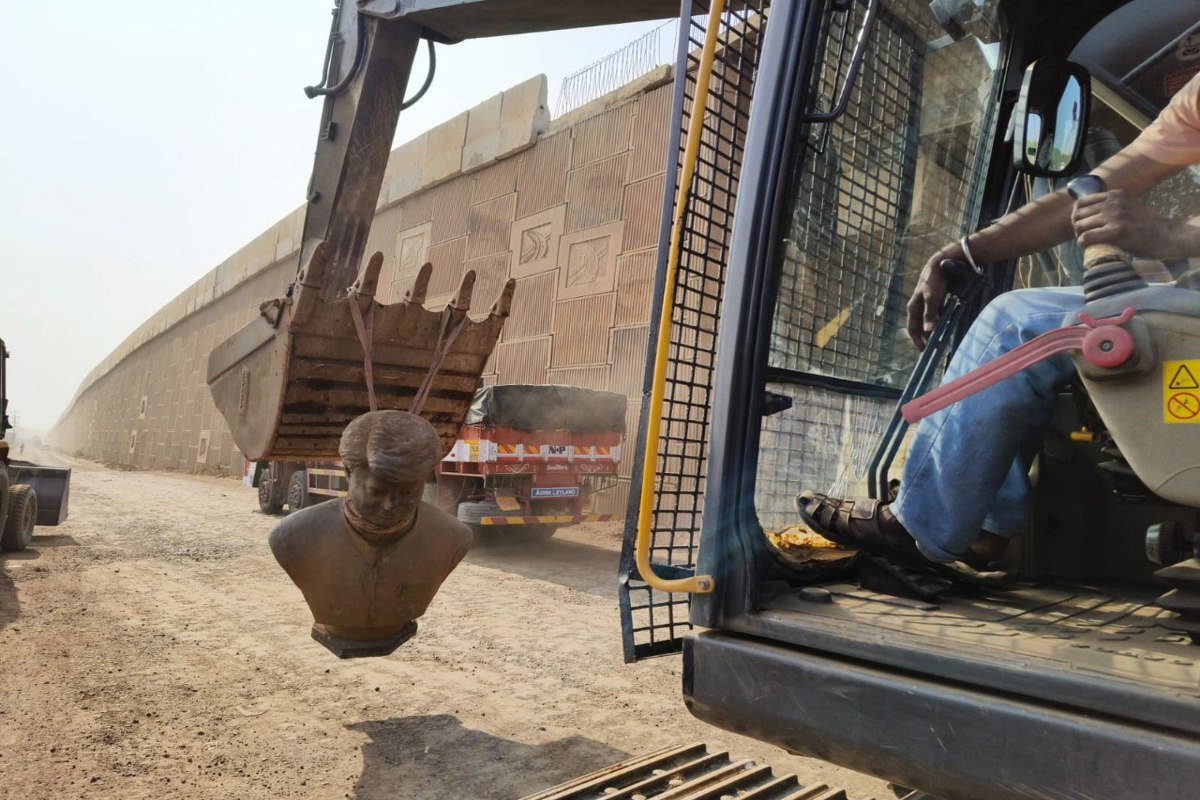 कटनी. मोटे मजबूत पट्टे का गले में कसकर डाला गया फंदा, जेसीबी के बकेट में लटकी यह मूर्ति, बेकद्री के साथ स्मारक से हटाकर दूसरे स्थान पर प्रतिमा को लेकर जाते हुए श्रीजी कंस्ट्रक्शन कंपनी के कर्मचारी…। यह दृश्य है पूर्व केंद्रीय मंत्री स्व माधवराव सिंधिया की प्रतिमा का। दरअसल नेशनल हाइवे अथॉरिटी ऑफ इंडिया द्वारा नेशनल हाइवे-30 पीरबाबा से चाका बाइपास का उन्नयनन कराया जा रहा है। यह काम 2020 से चल रहा है। 193 करोड़ रुपए से काम कराया जा रहा है। 22 माह में काम पूरा हो जाना था, लेकिन अभी भी 20 फीसदी शेष है। चाका बाइपास में फ्लाइओवर का निर्माण कराया जा रहा है, ठीक बाजू में जहां पर सडक़ का जंक्शन बनना है, वहां पर पूर्व केंद्रीय मंत्री माधवराव सिंधिया का स्मारक आ गया है।