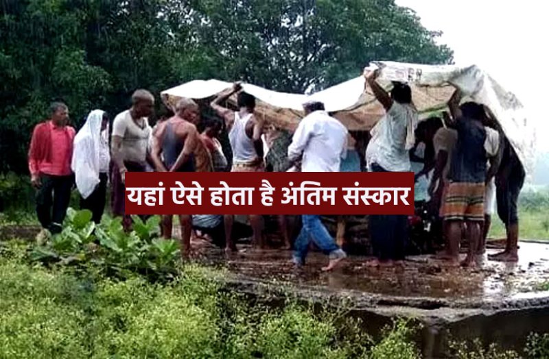 इटौली गांव के 72 वर्षीय बुजुर्ग बैद्यनाथ के निधन के बाद ग्रामीण शव लेकर मुक्तिधाम पहुंचे तो हमेशा की तरह एक बार फिर सरकारी अव्यवस्था से रूबरू हुए। यहां अंतिम क्रिया की तैयारी चल ही रही थी, शव को चिता पर रखने के के बाद अग्नि संस्कार होना ही था तभी तेज बारिश शुरू हो गई। इसके बाद फौरन ग्रामीण दौड़कर गए और पास के घरों से पॉलिथीन लेकर आए और चिता को ढंका। इसके बाद अग्नि संस्कार किया जा सका। इस दौरान ग्रामीण आधा घंटा से ज्यादा समय चिता को पॉलिथीन से ढंककर खड़े रहे, थोड़ी देर बाद जब चिता में अग्नि लगाई गई तब जाकर ग्रामीण दूर हटे। हालांकि यदि बारिश तेज होती तो शव का अंतिम संस्कार भी मुश्किल था।