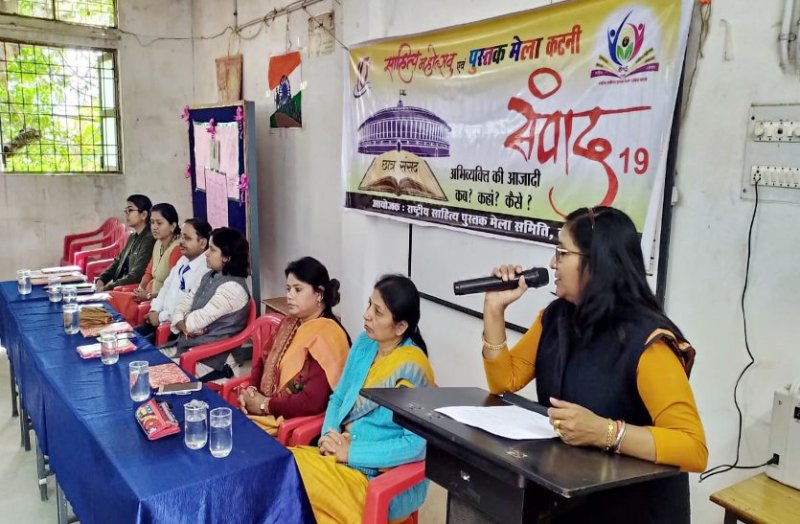 कटनी. राष्ट्रीय साहित्य पुस्तक मेला समिति द्वारा आयोजित 10वां साहित्य महोत्सव एवं पुस्तक मेला जो 20 दिसंबर से 25 दिसंबर साधुराम विद्यालय में आयोजित किया जा रहा है। इस परिपेक्ष में कन्या महाविद्यालय कटनी में छात्र संसद-संवाद कार्यक्रम 'अभिव्यक्ति की आजादी कब, कहां कैसे' विषय पर रखा गया। जिसमें मुख्य वक्ता के रूप में डॉ. चित्रा प्रभात, कार्यक्रम की अध्यक्ष डॉ. सुनीता मसराम प्राचार्य कन्या महाविद्यालय, अंकिता तिवारी पुस्तक मेला समिति सदस्य एवं कार्यक्रम प्रभारी, मुख्य अतिथि मनीष निगम, आभा चौकसे आदि की उपस्थिति रही।