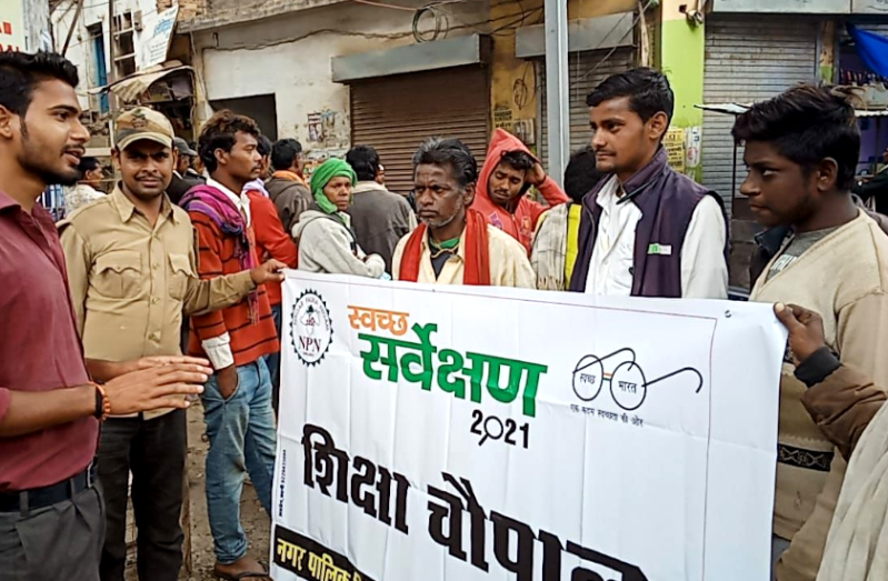 विगत दिवस निगम की सहयोगी संस्था ओम सांई विजन द्वारा समाज सेवी मंजूषा गौतम के साथ जगन्नाथ चौक स्थित ढलान पर शिक्षा चैपाल का आयोजन किया जाकर उपस्थित जनों को स्वच्छ सर्वेक्षण की विभिन्न गतिविधियों से अवगत कराते हुए सेग्रीगेशन के माध्यम से घरों से निकलने वाले गीला-सूखा कचरा को अलग अलग डस्टबिन में रखनें और निगम के कलेक्शन वाहन में देकर नगर की सफाई व्यवस्था में सहयोग प्रदान करने, गीले कचरे से घर पर ही जैविक खाद तैयार कर कचरे की मात्रा को कम करने संबंधी जानकारी प्रदान की गई।