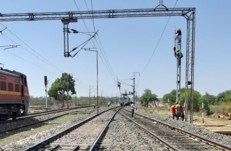 रविवार को न्यू कटनी जंक्शन (एनकेजे) आउटर से सिंगरौली लाइन पर ओएचइ का काम तेज किया गया