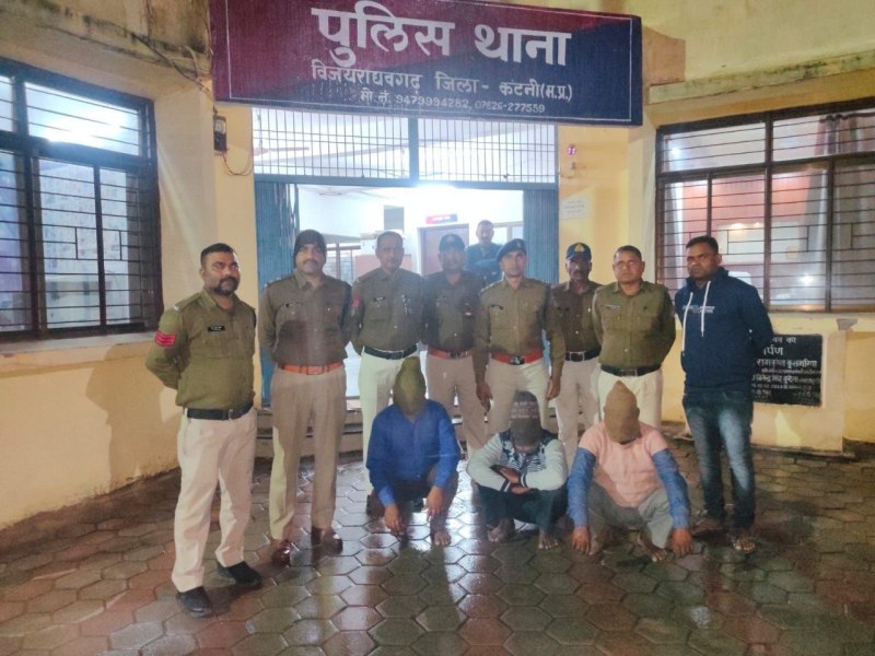 विजयराघवगढ़ थाना प्रभारी अनूप सिंह ने बताया कि वाहन जांच के दौरान 120 नग विफोटक पदार्थ जब्त किया है। गुरुवार को मुखबिर से सूचना मिली कि दो पहिया वाहन में दो व्यक्ति भारी मात्रा में विस्फोटक पदार्थ कैमोर सलैया तरफ से टीकर होते हुए उमरिया तरफ जा रहे हैं। उक्त सूचना पाते ही विजयराघवगढ़ पुलिस ने संदिग्ध व्यक्तियों की तलाश की गई। आइटीआइ कॉलेज रोड विगढ़ के पास पुलिस को देखकर मोटर साइकिल चालक गाड़ी को मोडकऱ भागने का प्रयास करने लगे। तभी पुलिस ने दोनों आरोपियों को दबोच लिया। याशीन शाह (46) एवं रामदयाल वर्मा पिता (55) दोनों निवासी चंदिया जिला उमरिया होना बताया। हिरासत में लेकर पूछताछ की। जिनके पास मिली बोरी से 120 नग विस्फोटक पदार्थ करीब 13 हजार कीमत के मिले। उक्त विस्फोटक पदार्थ के संबंध में वैद्य लायसेंस नहीं मिला। आरोपियों के विरूद्ध अपराध धारा 4, 5 विस्फोटक पदार्थ अधिनियम के तहत मामला पंजीबद्ध किया। पूछताछ में विक्रेता सतीष कुमार पयासी (35) निवासी ग्राम अमेहटा थाना कैमोर, अमित कुमार पयासी (47) निवासी ग्राम भटूरा मैहर, रामकरण पटेल (56) निवासी मझगवां तहसील अमरपाटन जिला सतना (मैहर) का नाम खुलासा हुआ, जिनको गिरफ्तार करते हुए कार्रवाई की है। मामले में अन्य आरोपियों की संलिप्तता के बारे में भी पुलिस पता लगा रही है। वहीं विजयराघवगढ़ पुलिस यासीन, सतीश, रामदयाल वर्मा को रिमांड पर लेकर पूछताछ कर रही है।
