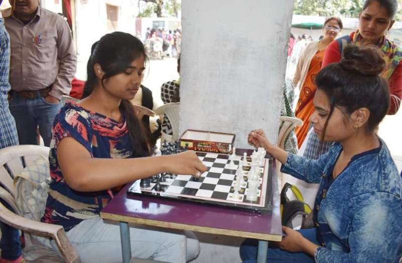 कटनी। गर्ल्स कॉलेज में आयोजित एनुअल स्पोर्ट्स डे में शतरंज खेल रहीं छात्राएं।
