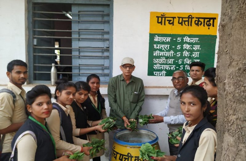 कटनी. तिलक कॉलेज में स्वामी विवेकानंद कैरियर मार्गदर्शन योजनान्तर्गत विद्यार्थियों को जैविक कृषि का प्रशिक्षण दिया जा रहा है। जैविक कृषि पाठशाला नैगवां के संचालक रामसुख दुबे स्वरोजगार एवं स्वाववलंबन के लिए विद्यार्थियों को जैविक खेती का प्रशिक्षण दे रहे हैं। पांच पत्ती काढ़ा जैविक कीटनाशक का प्रायोगिक प्रदर्शन विद्यार्थियों को कराया गया। इस दौरान ट्राइकोडर्मा विरडी का जैविक खेती में उपयोग, खेती में कीट एवं खरपतवार के कारण कई तरह के रोग व बीमारियां लगती हैं उनसे बचाव के बारे में जानकारी दी। जैविक खेती में फसलों में कीट एवं रोग कम लगते हैं। कीट रोग एवं बीमारियों से खतपतवार द्वारा 33 प्रतिशत रोगों से 26 प्रतिशत कीटों से 20 प्रतिशत भंडारण में 7 प्रतिशत चूहों द्वारा 6 प्रतिशत, अन्य कारण से 8 प्रतिशतक्षति होती है।
