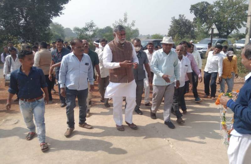 मसंधा में स्थानीय जनों से मुलाकात करते केंद्रीय जल शक्ति एवं नागरिक खाद्य आपूर्ति राज्यमंत्री प्रहलाद पटेल.