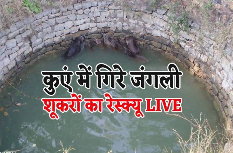कुएं में गिरे 8 जंगली शूकर