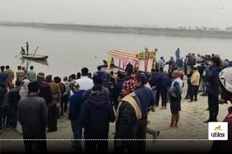 चार लोगों के नदी में डूबने के बाद जुटी लोगों के भीड़