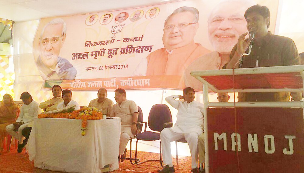 अटल स्मृति दूत प्रशिक्षण में सभी कार्यकर्ताओं को विधानसभा के प्रत्येक बूथों के पवित्र स्थानों से मिट्टी संग्रहण करने को कहा गया है। इस मिट्टी से नया रायपुर में अटल स्मारक का निर्माण किया जाएगा। इसी स्मारक से प्रदेश की पहचान होगी। इस प्रशिक्षण में कवर्धा विधायक अशोक साहू, भाजपा प्रदेश महामंत्री संतोष पांडेय, राज्य पिछड़ा वर्ग आयोग के अध्यक्ष डॉ. सियाराम साहू, युवा मोर्चा के प्रदेश अध्यक्ष विजय शर्मा सहित बड़ी संख्या में भाजपा कार्यकर्ता उपस्थित रहे। इस दौरान उन्हे कई जानकारी दी गई।