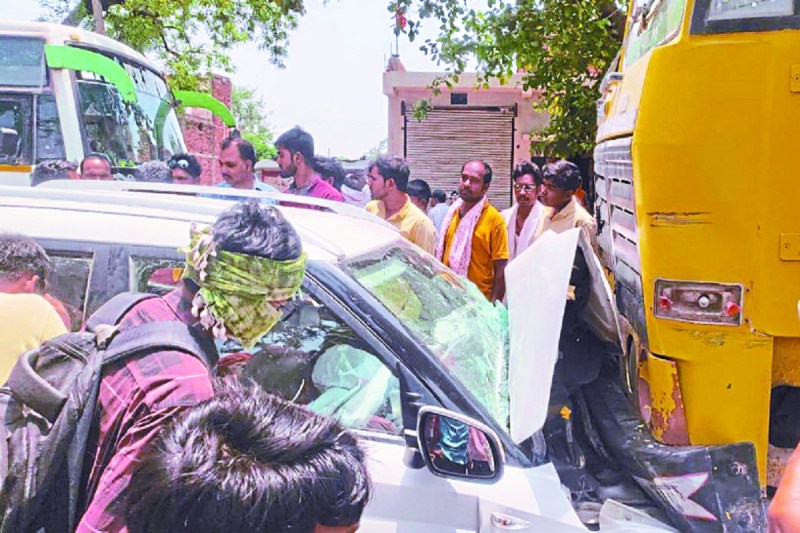 Kawardha road accident: कवर्धा शहर से तीन किमी दूर राजनांदगांव मार्ग में ग्राम भागूटोला के पास कार व हाइवा वाहन में जोरदार टक्कर हो गई। कार सीधे हाइवा के सामने जा घुसी, जिससे सामने बैठे दो लोगों की जान एयर बेग के खुलने से बच गई। लेकिन साथ में बैठी पांच माह की बच्ची की गंभीर चोट लगने से मौत हो गई।