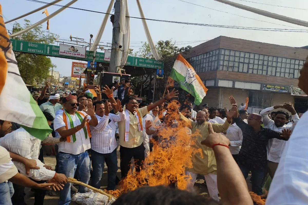 CG Liquor shop: हिंदू धर्म के प्रमुख पर्व होली के दिन शराब दुकानें खुले रखने के राज्य सरकार के निर्णय के विरोध में जिला कांग्रेस कमेटी कबीरधाम ने जोरदार प्रदर्शन किया। इस दौरान कार्यकर्ताओं ने मुख्यमंत्री विष्णु देव साय और प्रदेश के गृहमंत्री विजय शर्मा का पुतला लेकर प्रदर्शनकर नाराजगी जताई।