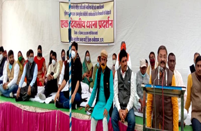 दूसरे दिन रविवार को अभाविप कार्यकर्ताओं की गिरफ्तारी के विरोध में भाजपा ने गांधी मैदान में धरना प्रदर्शन किया। इस दौरान सांसद संतोष पाण्डेय, पूर्व सांसद अभिषेक सिंह, जिला भाजपा, भाजयुमो के पदाधिकारी बड़ी संख्या में मौजूद रहे।