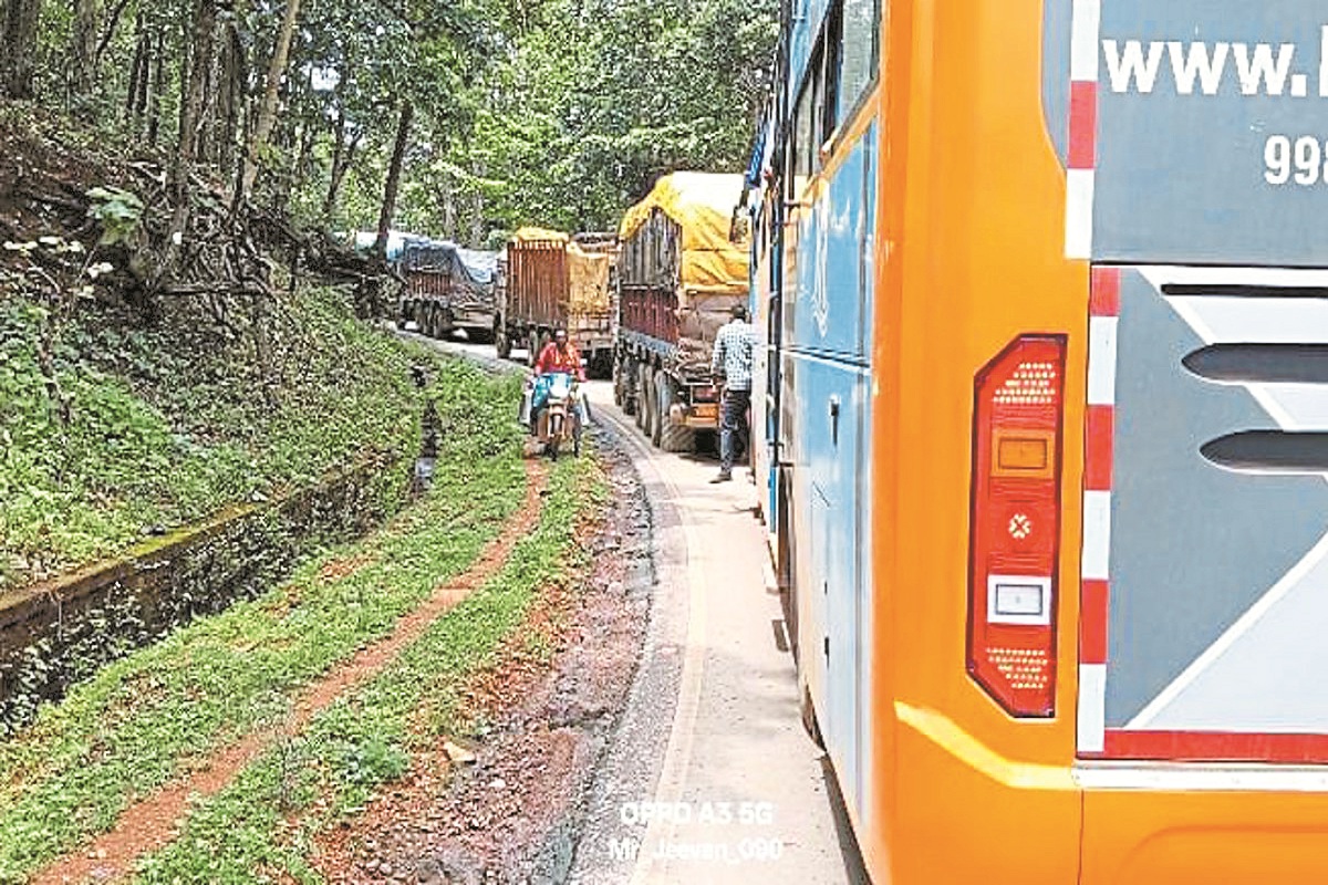 चिल्फीघाटी में फंसा ट्रेलर (Photo Patrika)