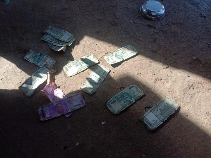 आरूद। तालाब किनारे लावारिस मिले पांच सौ और दो हजार रुपए के नोट।