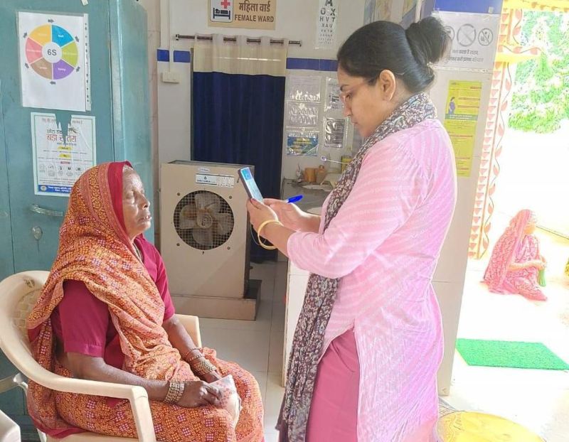आयुष्मान : बुजुर्गों का आयुष्मान कार्ड जनरेट करतीं स्वास्थ्य कार्यकर्ता ।