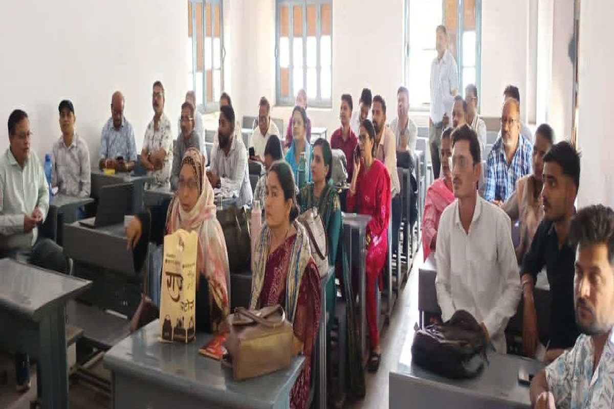 खंडवा : जनगणना के लिए प्रशिक्षण लेते शिक्षक व अन्य कर्मचारी-अधिकारी