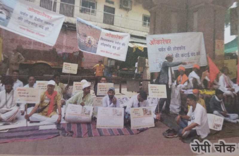 जिसमें समाज के कई प्रमुख लोग संतगण वकील एवं वरिष्ठ नागरिक शामिल थे। तीन दिवसीय धरने के पश्चात 12 मई को इंदौर से ओम्कारेश्वर के लिए तीन अलग-अलग स्थानों से पदयात्रा निकाली गई जो 16 मई की शाम ओमकारेश्वर पहुंची। 17 मई को ओमकारेश्वर के जेपी चौक पर धरने की शुरुआत की गई जिसमें महिलाएं बच्चे एवं पुरुषों सहित 250 से अधिक लोगों ने भाग लिया, 18 मई को ओंकार पर्वत पर धरना एवं प्रदर्शन किया गया।