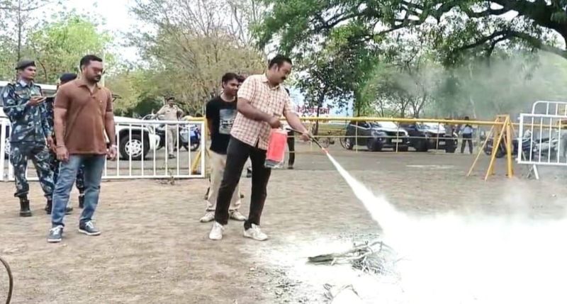 खंडवा. अग्नि दुर्घटना में बचाव का प्रशिक्षण देते एनडीआरएफ।