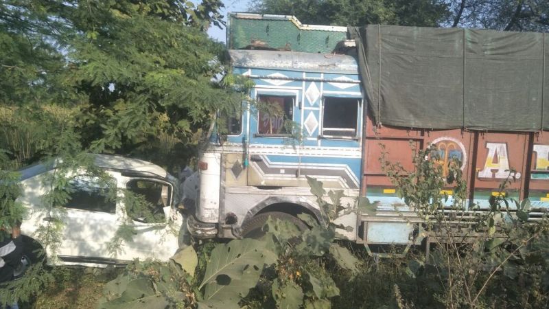Collision in car and truck in khargone