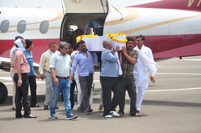 नेता, अफसर व कार्यकर्ता जुटेचार्टर प्लेन से जब दादू की पार्थिव देह खंडवा की हवाई पट्टी पर लाई गई तब उनके सम्मान में यहां भाजपा नेता, महापौर सहित अन्य उपस्थित रहे। जबकि कलेक्टर स्वाति मीणा नायक और एसपी एमएस सिकरवार, एडीएम अनुराग सक्सेना, एसडीएम शाश्वत शर्मा, सीएसपी शेष नारायण व अन्य ने पुष्पचक्र अर्पित किए। दो मिनट का मौन रखा गया।