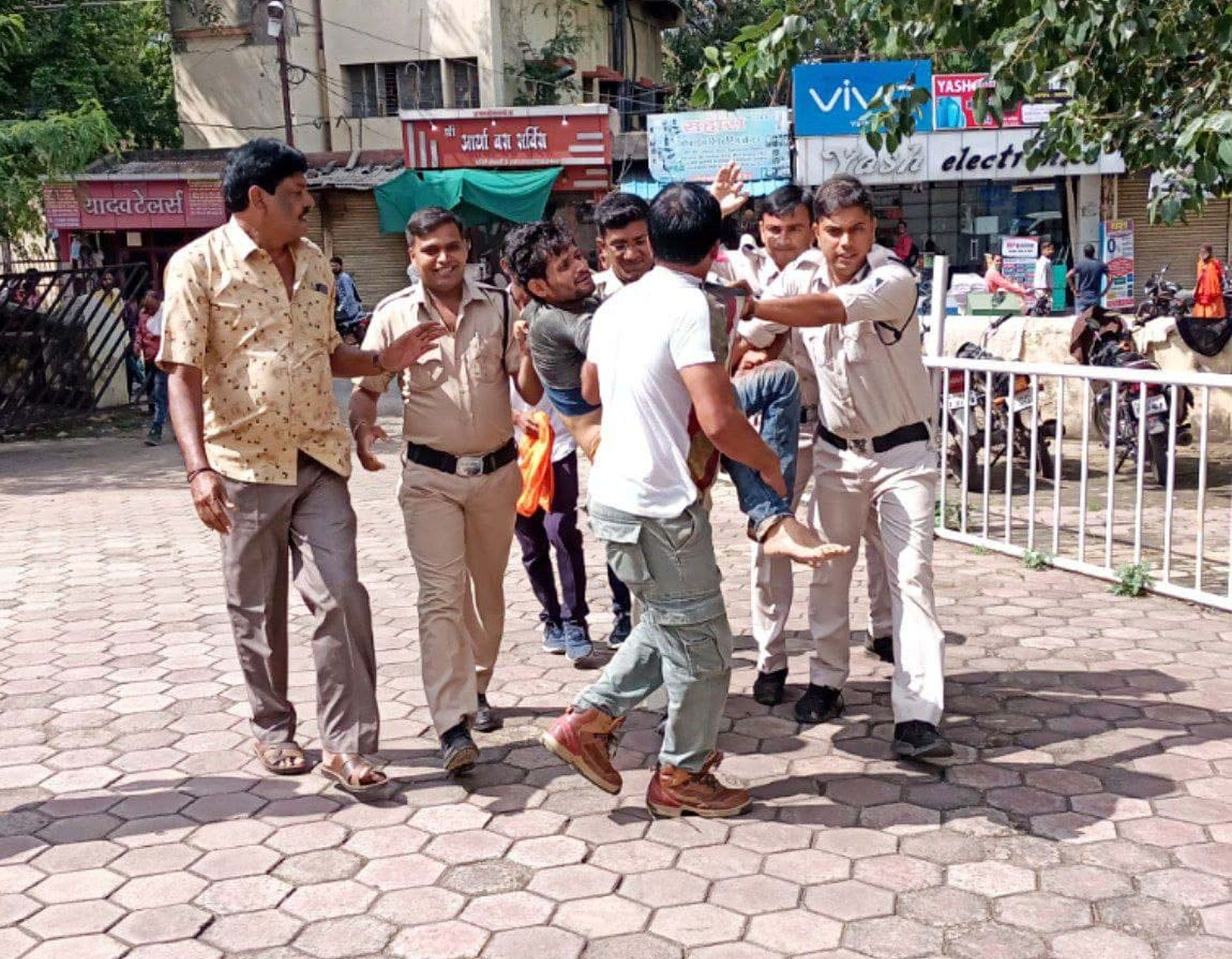 माता चौक पर किराए का मकान लेकर रह रहा देवेंद्र सावनेर सोमवार दोपहर नशे की हालत में थाने पहुंचा और अपनी पत्नी के खिलाफ केस दर्ज करने की मांग करने लगा। पुलिस ने नशे की हालत में देख उसे बाहर बैठने को कहा। इस बीच थाना परिसर में ही देवेंद्र ने अपने हाथ पर ब्लेड मार ली, हालांकि घाव बहुत ही मामूली था, लेकिन पुलिसकर्मी उसकी स्थिति देखते हुए मेडिकल के लिए अस्पताल ले गए। यहां भी देवेंद्र ने हंगामा किया, जिसके बाद वापस उसे थाने लाया गया, ताकि नशा उतरने के बाद समझाइश देकर घर भेज सके। नशे में देवेंद्र बार-बार अपनी पत्नी को मारने की बात करता रहा और अचानक दौड़ लगाकर थाने से निकल गया। कोई घटना न कारित कर दे, इसके लिए पुलिस भी उसके पीछे भागी।