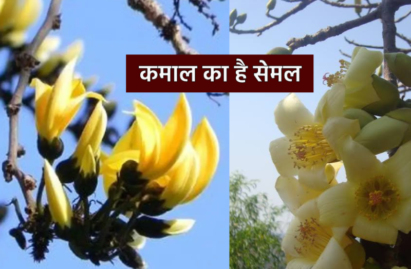 Health Benefits Of Semal. लोक जैव विविधता पंजी निर्माण के लिए प्रयास कर रहीं वनस्पति शास्त्र की प्रोफेसर और उनके सहयोगी छात्रों की टीम ने दुर्लभ वनस्पति पीला सेमल की खोज की है। खंडवा से भोपाल के रास्ते में आष्टा के पास सड़क किनारे पीले सेमल का पेड़ पाया गया, जिसे पंजी में दर्ज कर लिया गया है। इसे बॉम्बेक्स सिबा और बॉम्बेक्स इन्सिग्ने भी कहते हैं। यह वनस्पति मालवेसी कुल की सदस्य है। इसका जनजातीय नाम खट्सावर, सौरी व थोड़ी है।