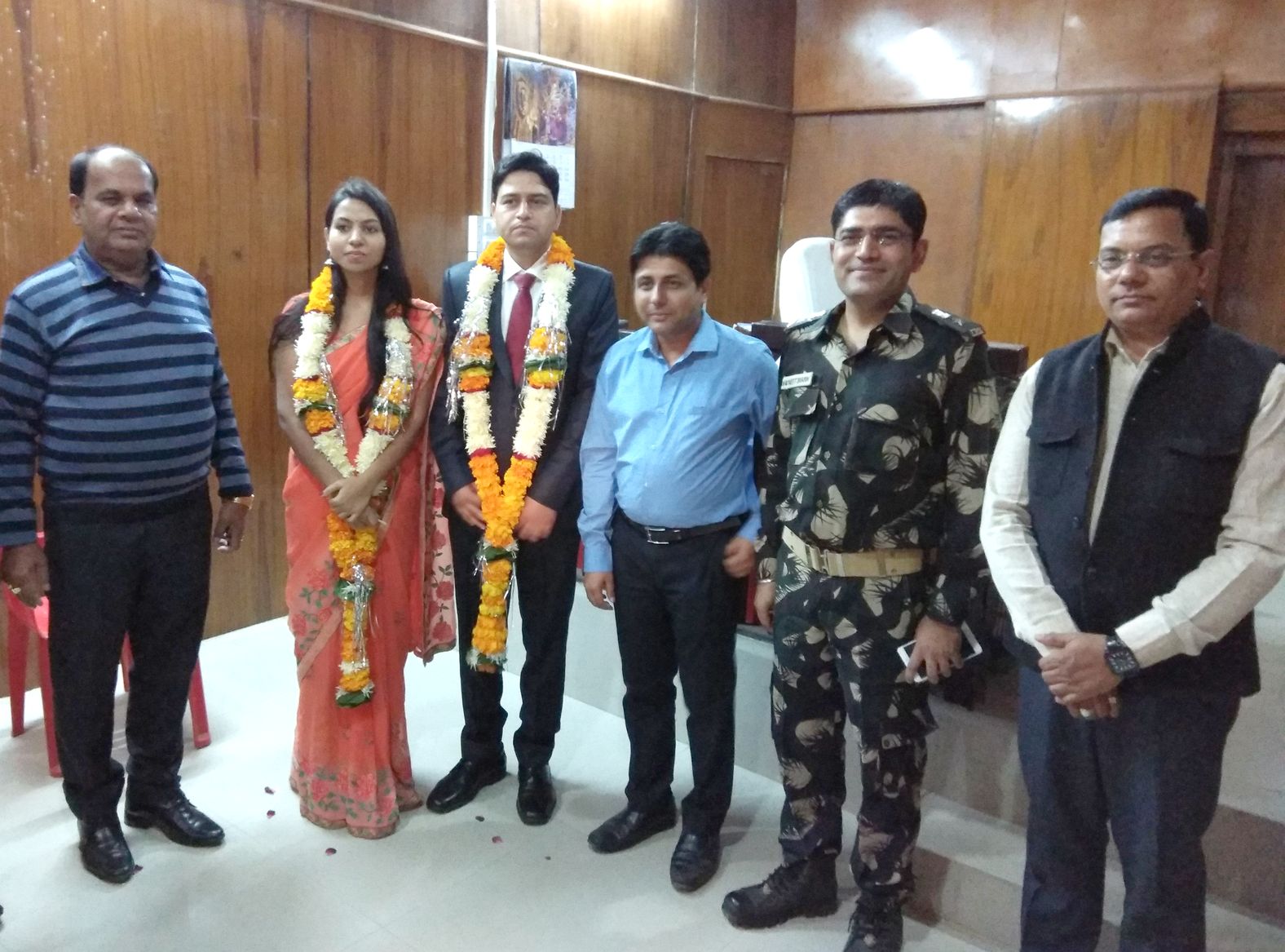 एमपी कैडर में 2016 बैच की आईएएस प्रीति यादव (उप्र निवासी) खंडवा में सहायक कलेक्टर के पद पर हैं। जयपुर के रहने वाले दिलीप कुमार यादव नागालैंड कैडर के 2014 बैच के आईएएस हैं। शुक्रवार शाम 4.30 बजे कलेक्टर कोर्ट में आईएएस प्रीति और दिलीप परिजन के साथ कलेक्टोरेट पहुंचे। यहां न्यायालयीन प्रक्रिया पूरी करने के बाद करीब 4.50 बजे दोनों अधिकारियों ने जिला मजिस्ट्रेट अभिषेक सिंह के समक्ष एक-दूसरे को वरमाला पहनाई। बाद में एक-दूसरे को मिठाई खिलाई। तीन गवाहों में एक में जहां प्रीति के पिता तो दो गवाहों में एसपी भसीन और जिला पंचायत सीईओ वरदमूर्ति मिश्र ने हस्ताक्षर किए।