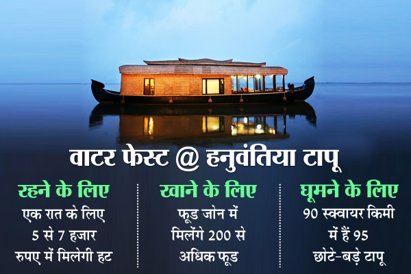 जल महोत्सव के दौरान करीब 20 तरह के खेल होंगे। वाटर स्पोर्ट्स, आइलैंड कैम्पिंग, एडवेंचर एक्टीविटीज, हॉट एयर बैलून, पैरा सेलिंग, पेरा मोटर्स, स्टार गेजिंग, वाटर स्कीइंग, जेट स्कीइंग, वाटर जॉर्बिंग, ब्रिज आर्टिफि शियल क्लाइम्बिंग, पतंगबाजी, तीरंदाजी, नौका विहार सहित अन्य गतिविधियां शामिल हैं।