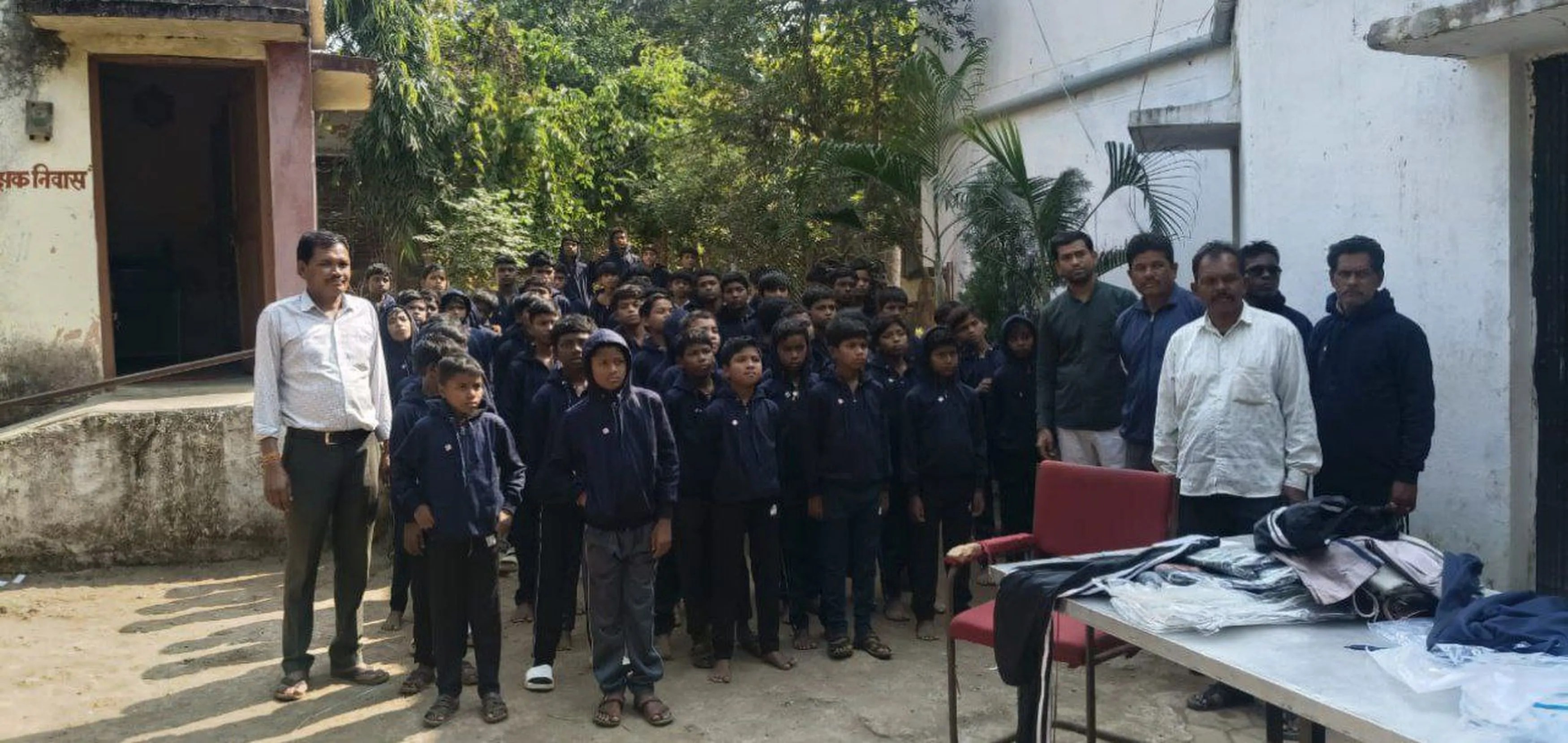 हॉस्टलों में बच्चों को गर्म कपड़े वितरण करते अधीक्षक व अन्य