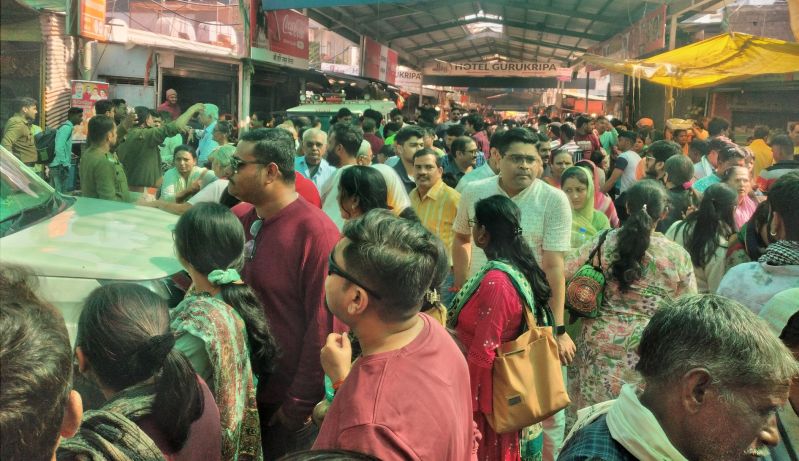 द्धालुओं की भीड़ नए झूला पुल के सामने जमा हो गई। पुलिस को बेरिकेट लगाकर रास्ता बंद करना पड़ा।