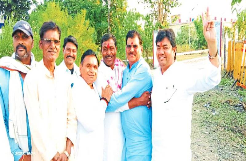 चेतराम नायक के नाम वापस लेने के बाद गले लगाते सांसद, विधायक