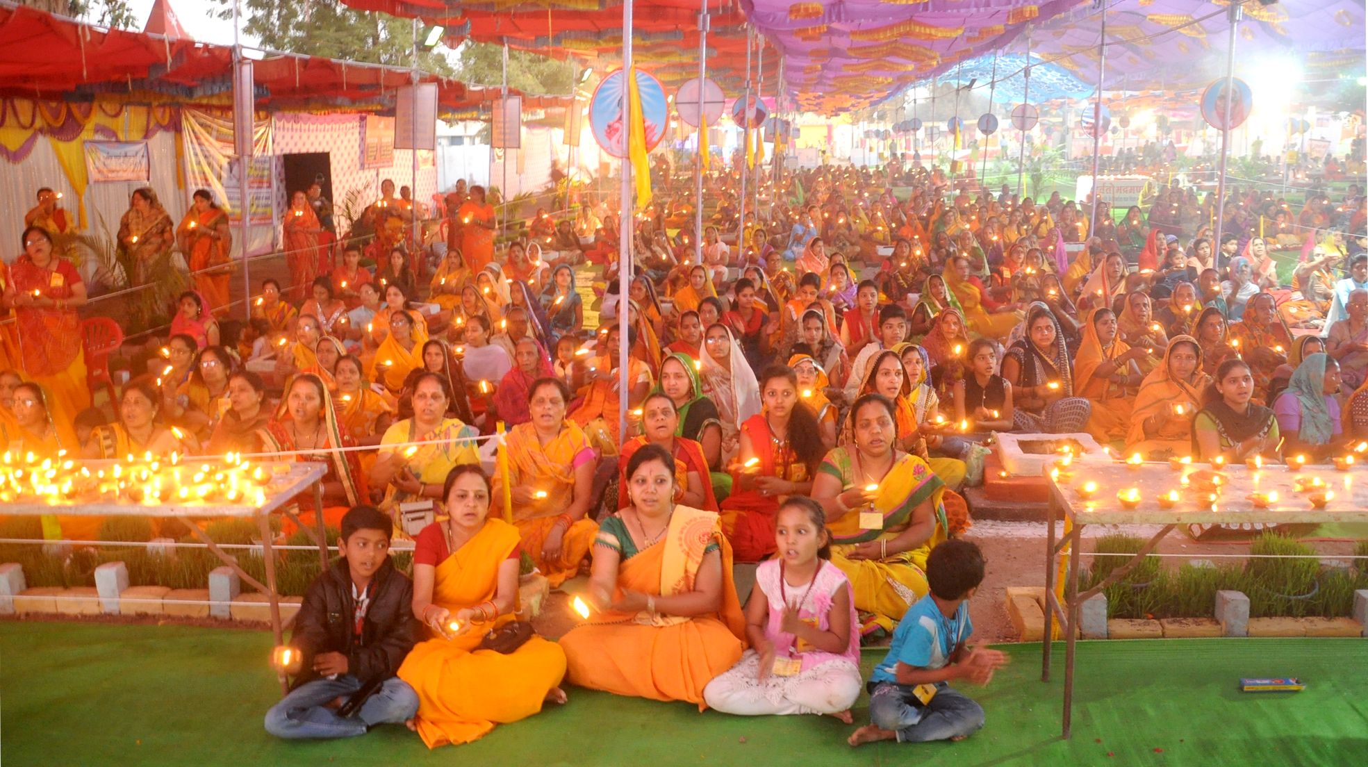 खंडवा. 108 कुंडीय गायत्री महायज्ञ आयोजन के चौथे दिन सोमवार सुबह 7 बजे से ही आयोजन स्थल पर यज्ञ करने के लिए शहर और ग्रामीण क्षेत्रों से श्रद्धालु जुटना शुरू हो गए थे। सुबह 8 बजे से यज्ञ में आहुतियां देने का सिलसिला शुरू हुआ। 5 हजार श्रद्धालुओं ने आहुति दी तो वहीं शाम को 2400 दीपों से राष्ट्र जागरण महा दीपयज्ञ हुआ।