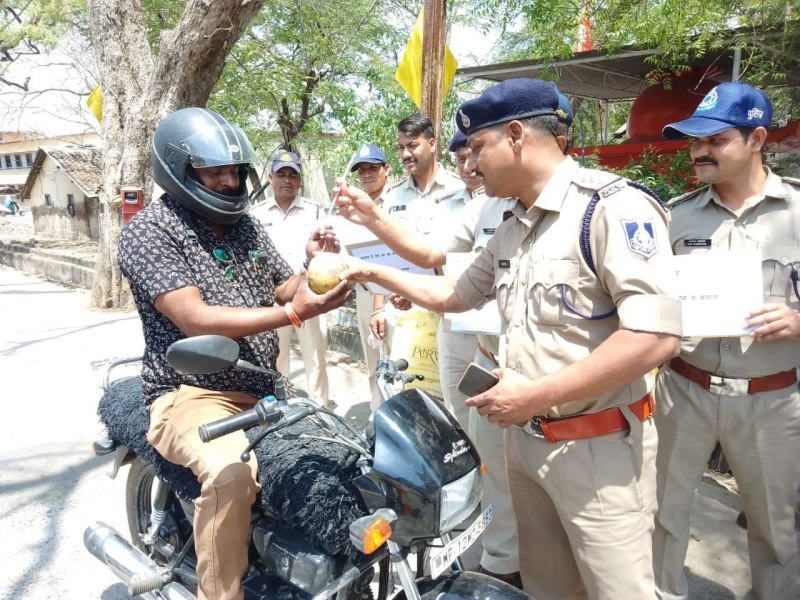 खंडवा. यातायात के लिए वाहन चालकों को जागरूक करने और सड़क दुघर्टनाओं में कमी लाने के लिए पुलिस मुख्यालय भोपाल से यातायात जागरूकता दिवस मनाए जाने के निर्देश दिए गए। इसी कड़ी में पुलिस अधीक्षक विवेक सिंह ने सभी थाना प्रभारियों को आदेश दिए कि 3 अप्रैल को अपने- अपने थाना क्षेत्र में थाना स्तर पर जागरूकता संबंधित कार्यक्रमों का आयोजन किया जाए। शहर से शुरूआत करते हुए यहां सांसद ज्ञानेश्वर पाटिल ने पुलिस अधिकारियों की मौजूदगी में यातायात पुलिस की हेलमेट जागरूकता रैली को हरी झंडी दिखाकर रवाना किया। शहर के मोघट थाना क्षेत्र में पुलिस ने दोपहिया वाहन पर हेलमेट लगाकर चलने वालों को नारियल पानी पिलाया। साथ ही उन्हें यातायात नियमों की जानकारी देकर कहा गया कि वह अपने से जुड़े लोगों को भी इसके लिए प्रेरित करें ताकि यातायात नियमों का पालन करते हुए सड़क दुघर्टनाओं से लोगों को बचाया जा सके।