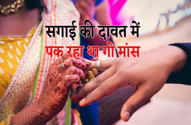 खंडवा में एक सगाई समारोह की दावत में गो मांस पकने की सूचना पर पुलिस ने छापा मारते हुए 60 किलो मांस जब्त किया है। पुलिस जब मौके पर पहुंची तो एक बड़े से तपेले में 50 किलो मांस पकाया जा रहा था जबकि 10 किलो मांस फ्रिज में रखा था जिसे पुलिस ने जब्त कर फॉरेंसिक जांच के लिए भेजा है। पुलिस जब सगाई समारोह में पहुंची तो वहां हड़कंप मच गया और घरवाले और लड़के पक्ष दोनों के ही लोग हैरान रह गए।