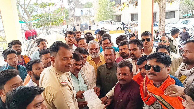 खंडवा. कोतवाली टीआइ को ज्ञापन सौंपते भाजपा व युमो पदाधिकारी, कार्यकर्ता।