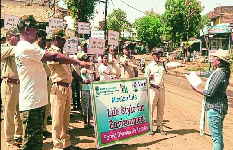 मुख्य वनसंरक्षक वन वृत्त खण्डवा आरपीरॉय के निर्देशन एवं मार्गदर्शन में प्रधानमंत्री द्वारा विश्व स्तर पर लिये गये संकल्प मिशन लाईफ के संबंध में 5 जून 2023 को विश्व पर्यावरण दिवस के पूर्वद माता मंदिर से हरदा मुख्य मार्ग की और लगभग 1/2 कि.मी. की दूरी में मुख्य मार्ग के दोनों तरफ फैले हुऐ पॉलीथिन , प्लास्टिक , डिस्पोजल गिलास एवं अन्य व्यर्थ सामग्री को एकत्रित कर डस्टबिन के माध्यम से ट्रेक्टर ट्राली में भरकर टूचिगं ग्राउण्ड नया हरसूद में डिस्पोज किया गया । इस के पश्चात माता मंदिर के आस पास लगी दुकानदारों को एवं आमजन को एकत्रित कर पर्यावरण , जल एवं वन संरक्षण हेतु समझाइश देकर जागरूक किया गया । इसके पश्चात आशापुर काष्ठागार में आकर पौधा रोपण कार्य किया गया । कार्यक्रम प्रातः 9 बजे शुरू होकर दोपहर 1 बजे तक 65 लोगों की सक्रिय भागीदारी के साथ सफलता पूर्वक पूर्ण हुआ।