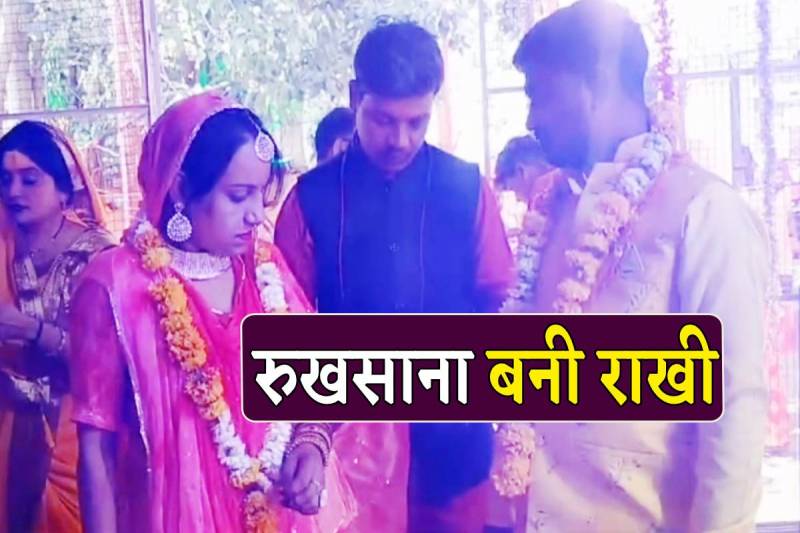 महाशिवरात्रि के शुभ अवसर पर सुनील और रूखसाना ने शादी करने का फैसला लिया। दोनों साथ में मंदिर पहुंचे जहां रुखसाना ने पहले तो अपनी मर्जी से सनातन हिंदू धर्म अपनाया और फिर रानी बनकर सुनील के साथ पूरी रीति रिवाज से सात फेरे लेकर सात जन्मों के पवित्र बंधन में बंध गई। महादेवगढ़ प्रमुख अशोक पालीवाल ने बताया कि रुखसाना ने सनातन हिंदू धर्म अपना लिया है और उन्होंने रामचरित मानस पढ़कर प्रभु श्रीराम के जीवन को समझने की इच्छा प्रकट की है। आज दोनों का विवाह संपन्न कराया गया और दोनों ही बहुत प्रसन्न हैं।