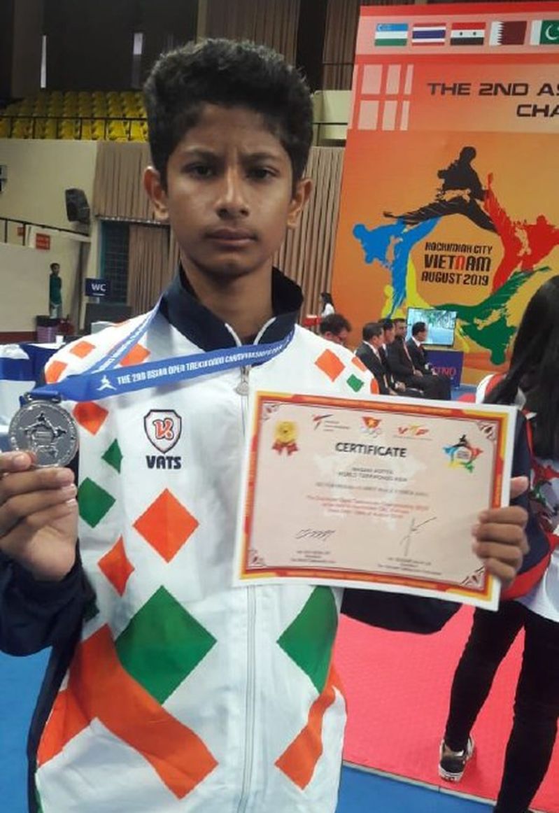 खंडवा. वल्र्ड ताईक्वांडो रैंकिंग स्पर्धा में खंडवा के आदित्य मसानी ने रजत पदक जीत विश्व में अपना परचम लहराया है। इससे जिले सहित प्रदेश, देश का नाम रोशन हुआ है। वल्र्ड ताईक्वांडो फेडरेशन एवं एशियन ताईक्वांडो यूनियन के संयुक्त तत्वावधान में वियतनाम में एशियन ताईक्वांडो ओपन चैंपियनशिप 2019 ग्रेड वन ऑफिशियल रैंकिंग टूर्नामेंट 15 से 18 अगस्त तक चल रहा है। स्पर्धा में भारतीय खेल प्राधिकरण के खिलाड़ी एवं भंडारी पब्लिक स्कूल के छात्र आदित्य मसानी ने भारतीय टीम से देश का प्रतिनिधित्व किया है। स्पर्धा में आदित्य मसानी ने कैडेट अंडर में 41 केजी वजन वर्ग में देश का रजत पदक दिलाया है। आदित्य ने 3 मैच खेलें।