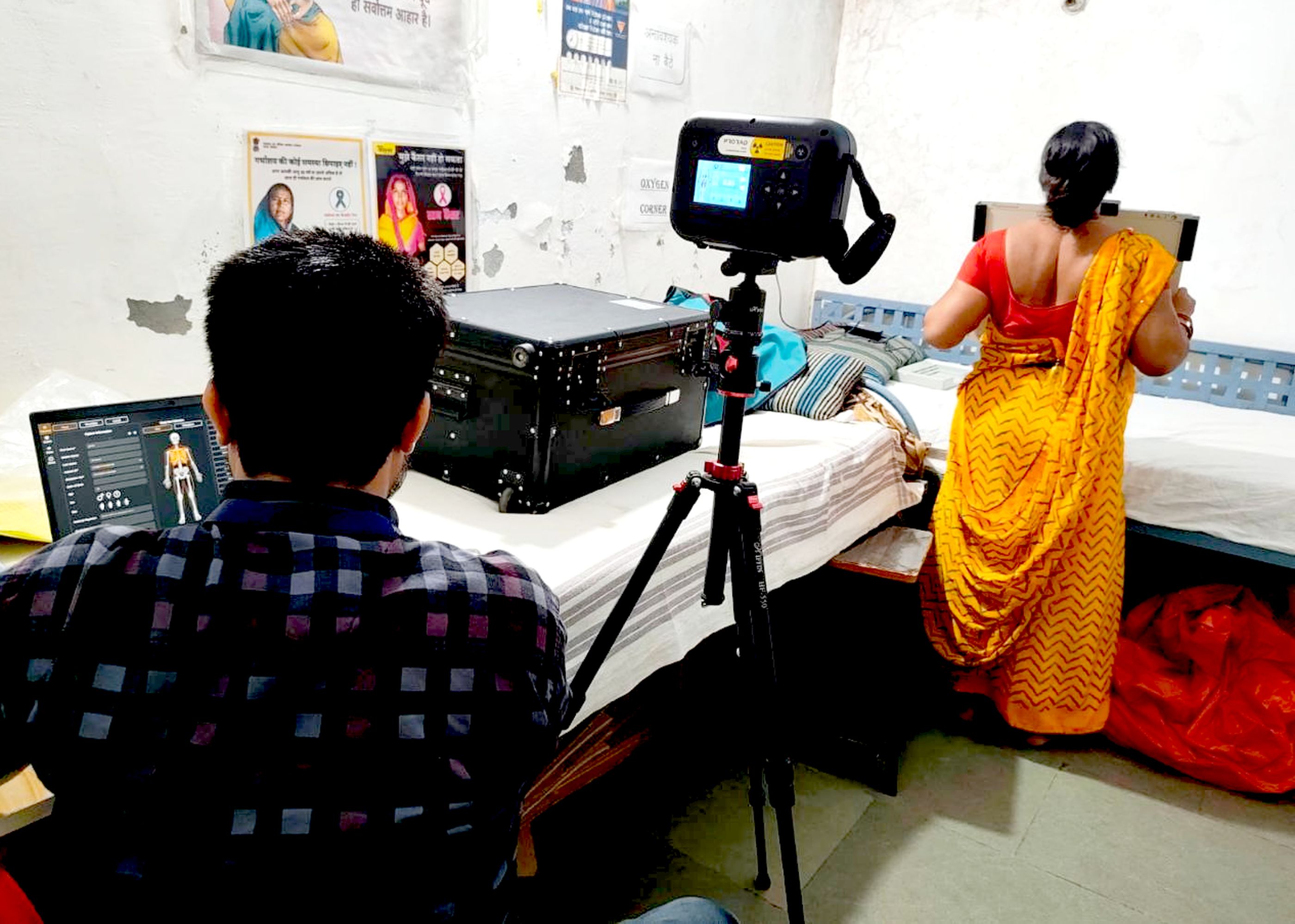 आदिवासी बहुल क्षेत्र में टीबी की पहचान के लिए स्क्रीनिंग करते स्वास्थ्य कर्मचारी