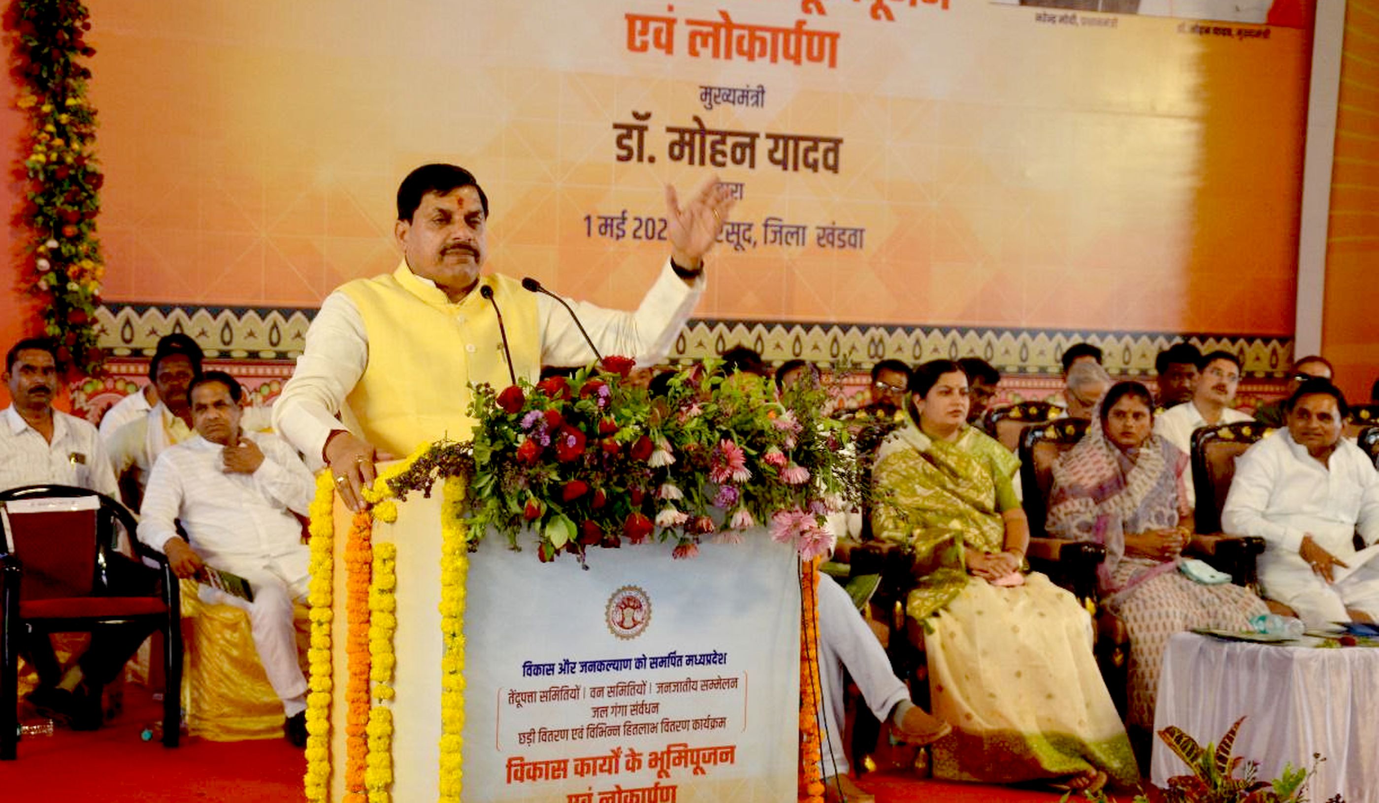 मुख्यमंत्री मोहन यादव हरसूद विधानसभा में तेंदू पत्ता समितियों को संबोधित करते हुए