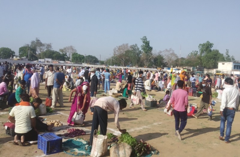 रविवार अलसुबह शुरू हुई सब्जी मंडी में सैकड़ो की संख्या में किसान और खरीदार पहुंचे। सब्जी बेचने वालों से लेकर खरीदने वालों तक कोई भी कोविड-१९ गाइडलाइन का पालन नहीं कर रहा था। इस मंडी में महाराष्ट्र से अंगूर बड़ी संख्या में पहुंच रहे है। अंगूर बचने वाले व्यापारी तक गाइडलाइन का पालन नहीं कर रहे है। एक ओर जहां जिला प्रशासन पूरे शहर में गाइडलालन को लेकर जागरूक कर रहा है, वहीं मंडी प्रशासन सूध तक नहीं ले रहा है। मंडी सचिव जितेंद्र कुमार चौधरी ने अपनी जिम्मेदारी यह कहते हुए टाल दी कि हमारे पास स्टॉफ नहीं है। अगर मंडी आने वाले किसान और खरीददारों को बिना मास्क के प्रवेश नहीं दिया तो किसान संगठन घेराव कर देता है। हमसे जितना प्रयास हो रहा है, हम कर रहे हैं।