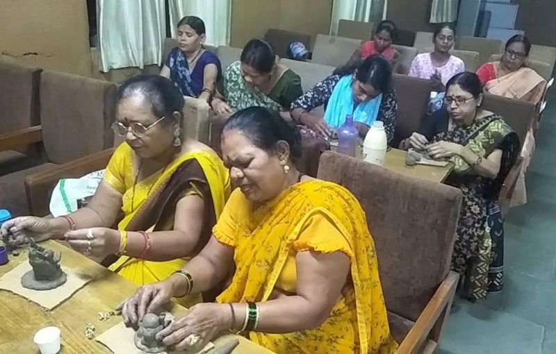 कार्यशाला में स्व-सहायता समूह की 20 महिलाएं शामिल हुईं। मिट्टी से गणपति बनाना सीखा। इसमें अनुपम स्व सहायता समूह, मां अम्बे स्व-सहायता समूह, हरिहर स्व-सहायता समूह, खाटू श्याम स्व -सहायता समूह, रिद्धि सिद्धि स्व सहायता समूह, जय मां ज्वाला देवी स्व सहायता समूह एवं महालक्ष्मी स्व सहायता समूह। नगर निगम की ओर से जोन प्रभारी भुवन श्रीमाली, दीपमाला कटारे, उमा हिरवे, रवि शर्मा एवं संदीप खराले कार्यशाला में उपस्थित रहे।