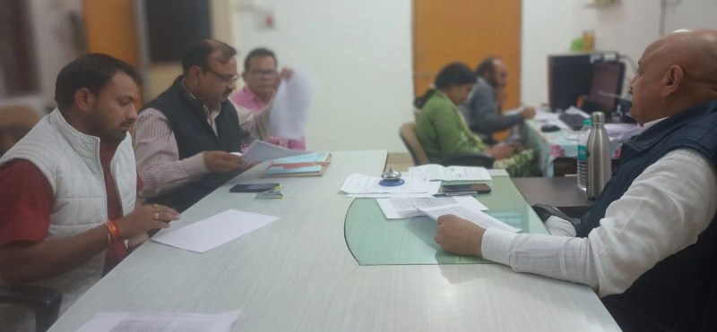 वन मित्र पोर्टल पर पट्टेधारियों के आवेदन निरस्त को लेकर चर्चा करते