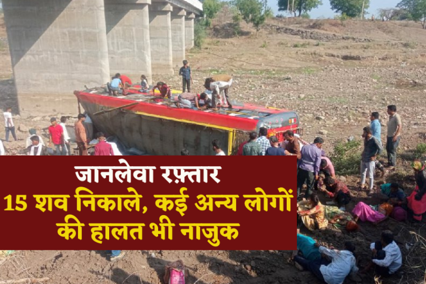 तेज रफ़्तार के कारण बस एकाएक बेकाबू होकर पुल तोड़कर नीचे जा गिरी- खरगौन के पास बोराड नदी में बस गिर गई। बोराड नदी पर पुल बना हुआ है लेकिन तेज रफ़्तार के कारण बस एकाएक बेकाबू होकर पुल तोड़कर नीचे जा गिरी। बस के गिरते ही वहां कोहराम मच गया। इस हादसे में 15 लोगों की मौत की सूचना है। बताया जा रहा है कि ये शव निकाले जा चुके हैं। मृतकों का आंकड़ा और बढ़ने की आशंका है।