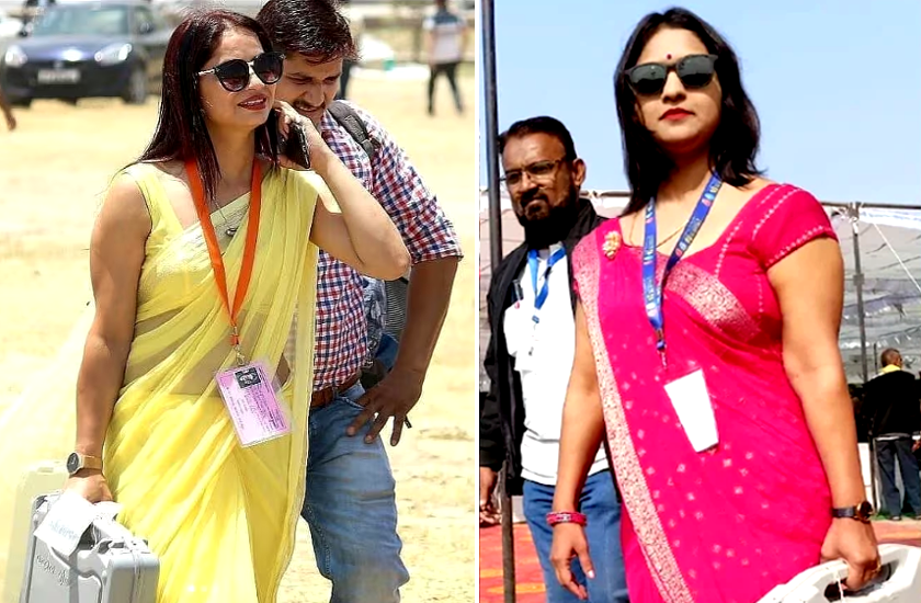 'पीली साड़ी' के बाद अब छाईं 'पिंक साड़ी' वाली पोलिंग अफसर, काला चश्मा, हाथ में EVM लिए तस्वीरें वायरल