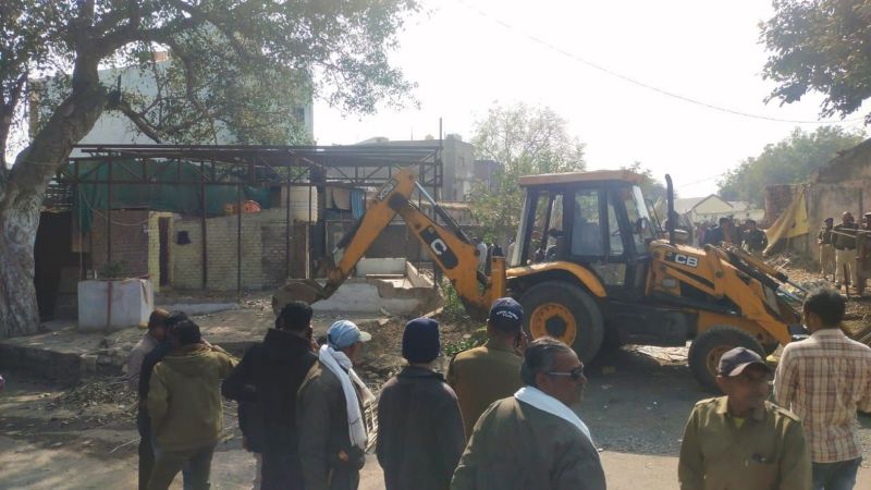 जेसीबी से मक्के निर्माण व टीनशेड को तोड़ा गया