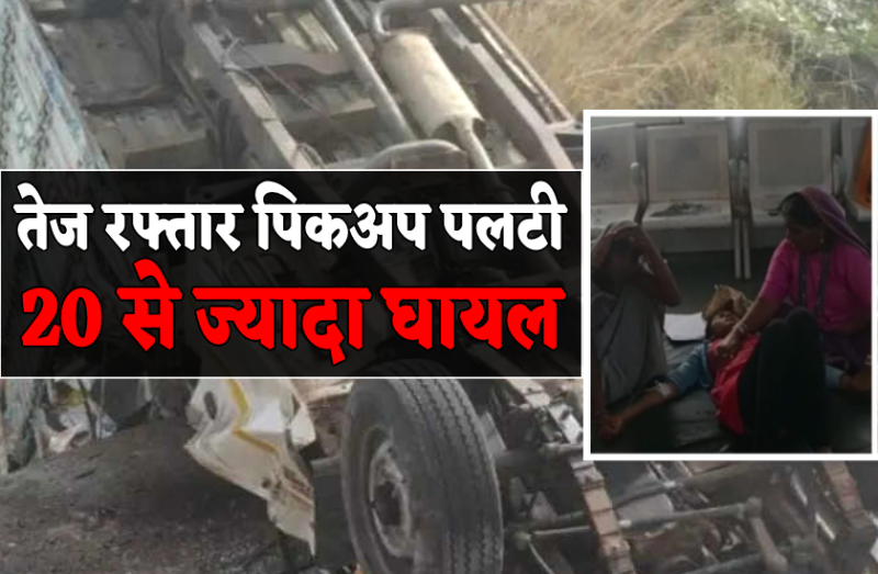 तेज रफ्तार पिकअप अनियंत्रित होकर पलटी, 20 से अधिक घायल, नाबालिग बच्चों को ले जा रहे थे मजदूरी कराने