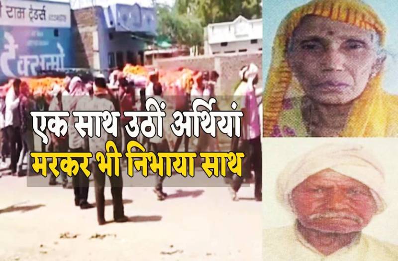 खरगोन. सात फेरे और सात जन्मों का साथ...साथ जीने-मरने के वादे और कसमें..इन सब के बारे में आपने कई बार सुना होगा लेकिन खरगोन में एक ऐसा अजीब संयोग देखने को मिला जिसे जानकर पूरा गांव भावुक हो उठा। यहां बुजुर्ग दंपति की एक साथ एक ही दिन घर से अर्थियां उठीं। मामला देवलगांव का है जहां 80 वर्षीय पत्नी की मौत के गम में 90 वर्षीय पति की सांसें भी थम गईं।