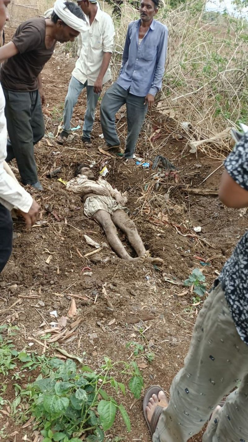 पुलिस और ग्रामीणों ने गोबर के ढेर में हत्या के बाद दबे शव को बाहर निकाला।
