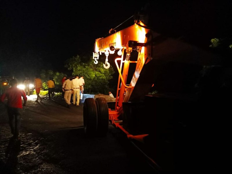हादसे की सूचना पर रात में क्रेन लेकर पहुंची पुलिस।
